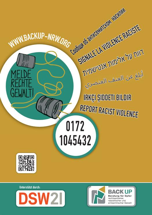 „BackUp“ ist eine von zwei Beratungsstellen für Betroffene von rechter Gewalt in Nordrhein-Westfalen. Sie ist für den Bereich Westfalen-Lippe zuständig, während die Opferberatung Rheinland in dem anderen Landesteil die Anlaufstelle ist. Seit November 2011 unterstützt das Projekt „BackUp“ Betroffene von extrem rechter, rassistischer und antisemitischer Gewalt, deren Angehörige sowie Zeuginnen und Zeugen.