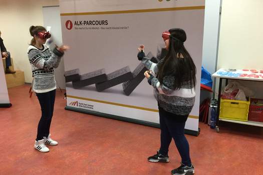 Ab wann darf ich Bier oder Schnaps kaufen? Was passiert, wenn ich auf dem Moped mit Alkohol im Blut erwischt werde? Sind meine Eltern zur Aufsicht verpflichtet? Diese und weitere Fragen zu den Rechten und Pflichten in Zusammenhang mit Alkohol werden an der ersten Station beantwortet. An Station zwei geht es darum, Alternativen zum Trinken zu finden. „Alkohol gehört für viele zum Wochenende – als eine Art Freizeitbeschäftigung. Daher sollen sie Aktivitäten nennen, die auch ohne Alkohol Spaß machen. Da kommen sie meist auf tolle Ideen wie einen Wellnessabend mit Freundinnen“, erklärt die Expertin. An der darauffolgenden Station geht es um die Auswirkungen, die Alkohol auf den Körper hat. „Dafür wird eine Puppe benutzt, wie man sie aus dem Bio-Unterricht kennt“, erklärt Julia Beus. Nachdem die Jugendlichen die Organe richtig zugeordnet haben, müssen sie entscheiden, welche durch einen hohen regelmäßigen Konsum beschädigt werden. An Station vier geht es ums Flirten. Hier wird diskutiert, was „Go’s“ und „No Go’s“ sind. „Wir sprechen über positive Seiten – dass man sich mit Alkohol lockerer fühlt. Aber natürlich auch darüber, was sich zum Negativen verändert. Die Mädchen sagen meistens, dass Jungs peinlich werden. Die Jungs entgegnen, dass Mädchen nur noch gackern“, berichtet Beus. Eine Rauschbrille, die den Zustand von Betrunkenheit simuliert, kommt an der letzten Station zum Einsatz. „Die Jugendlichen müssen damit Alltagsaufgaben erledigen, also etwa ein Fahrradschloss aufschließen. Das ist auf einmal ziemlich schwer. Sie sollen überlegen, wie schnell man so in eine gefährliche Situation kommen kann, beispielsweise auf dem Heimweg von einer Party“, führt die Expertin aus.