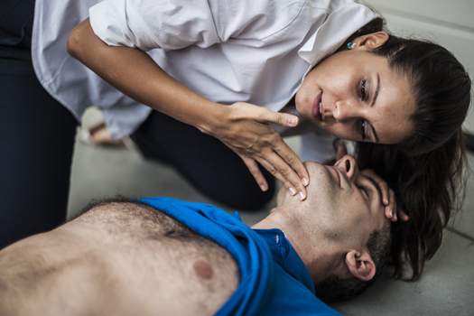 Bei einem Herzstillstand kann man an Hals und Handgelenken keinen Puls mehr fühlen. Erleidet jemand einen Atemstillstand, wird die Atmung sehr flach und stoppt schließlich ganz. Der Brustkorb hebt und senkt sich nicht mehr, die Lippen werden blau. Vor Mund und Nase ist kein Luftzug mehr zu spüren. In beiden Fällen muss sofort Erste Hilfe in Form von Mund-zu-Mund- oder Mund-zu-Nase-Beatmung sowie einer Herzmassage geleistet werden! Erste-Hilfe-Maßnahmen:
