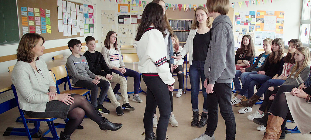 In diesem Video wird das Streitschlichterprogramm am Humboldt-Gymnasium in Düsseldorf vorgestellt. Hier werden Schülerinnen und Schüler der achten Klassen zu ehrenamtlichen Streitschlichtern ausgebildet. Unter Anleitung der Lehrerinnen Cordula Markett und Christine Gebhardt lernen die Kinder, wie man Konflikte im Schulalltag nachhaltig lösen kann.