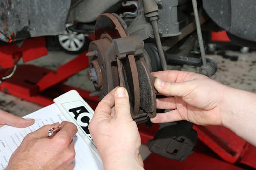 Bei diesem Mietwagen ist der Bremsbelag bis auf die Trägerplatte abgefahren